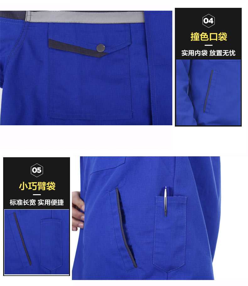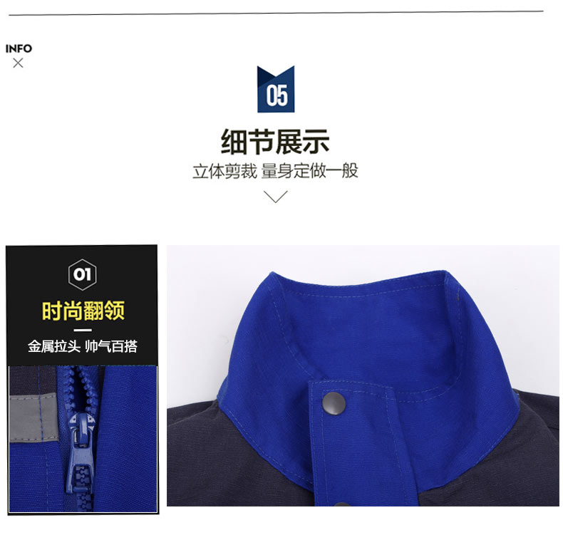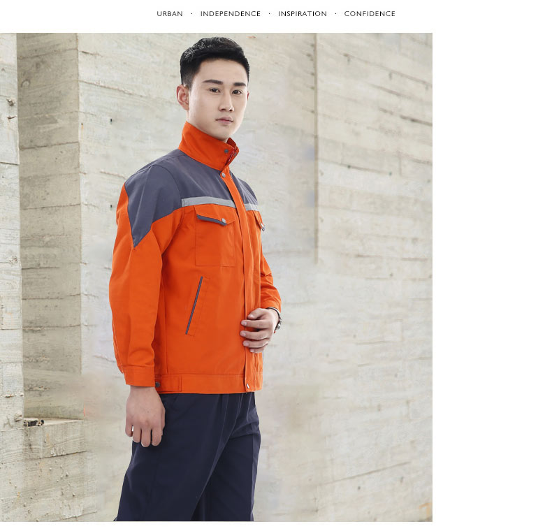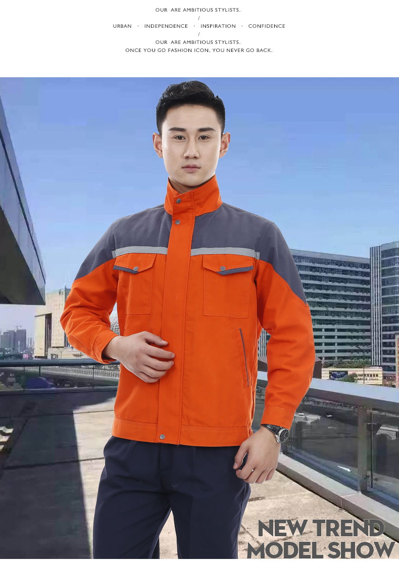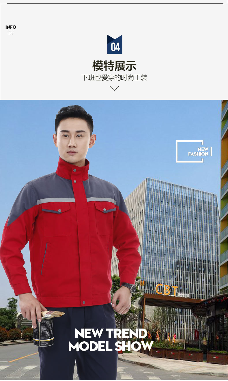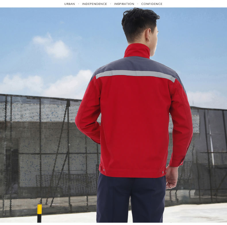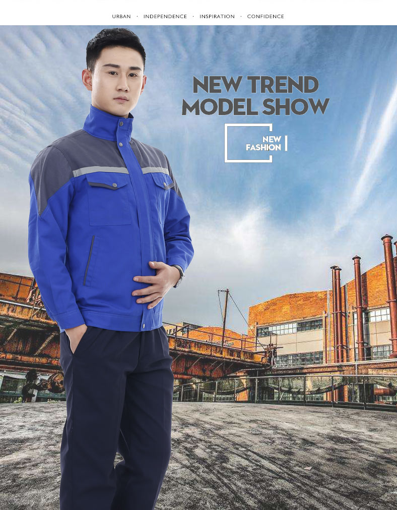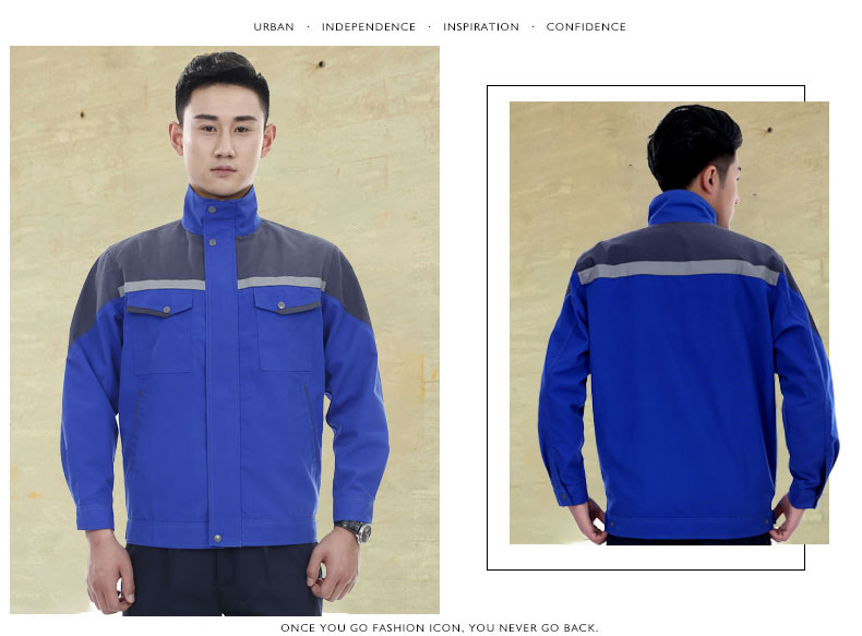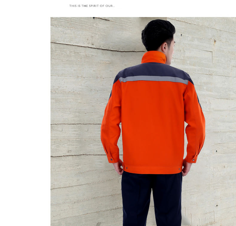 春秋裝工作服 GZFCQZ-6 采用滌棉棉毛帆布面料。手感柔軟。當然也可以用其他面料來訂制這款工作服。