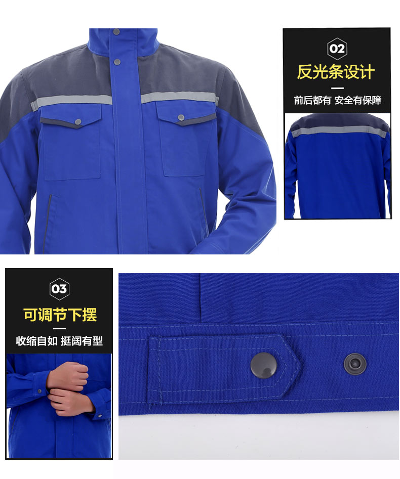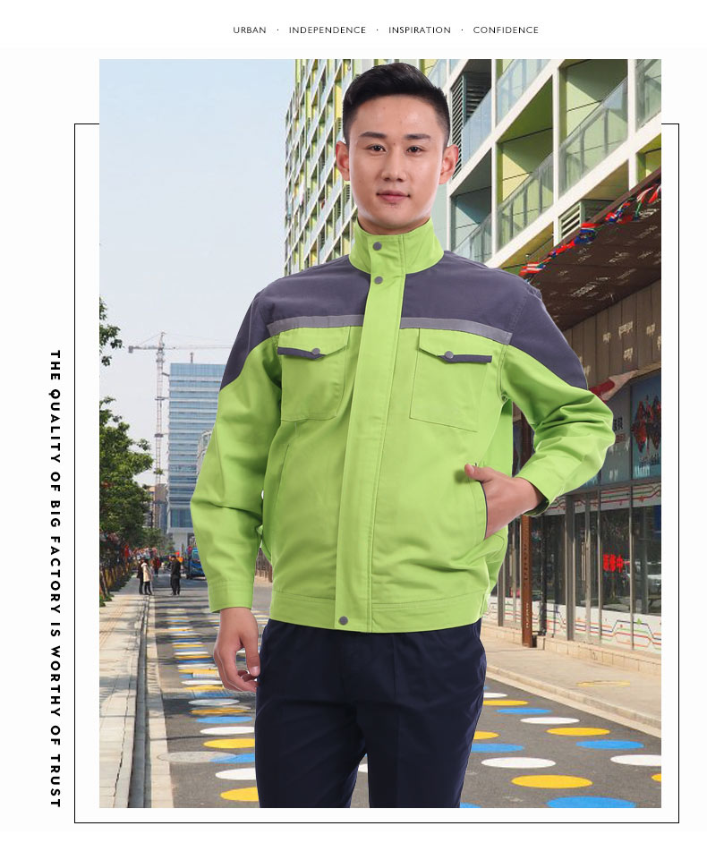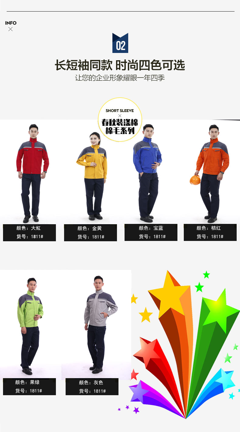 春秋裝工作服 GZFCQZ-6 采用滌棉棉毛帆布面料。手感柔軟。當然也可以用其他面料來訂制這款工作服。...