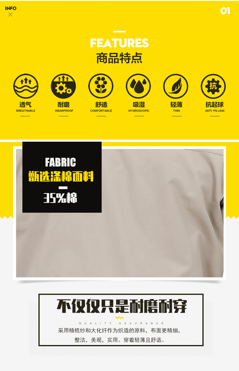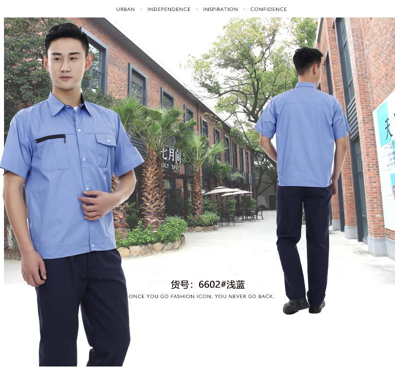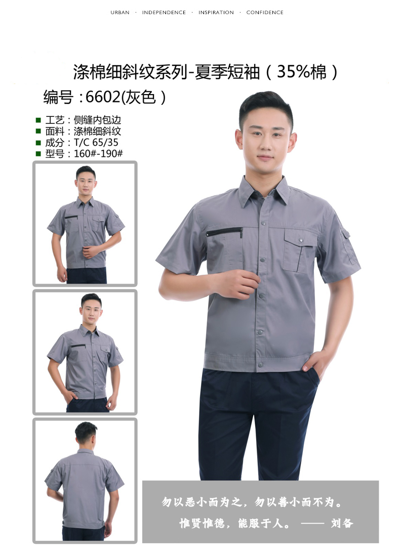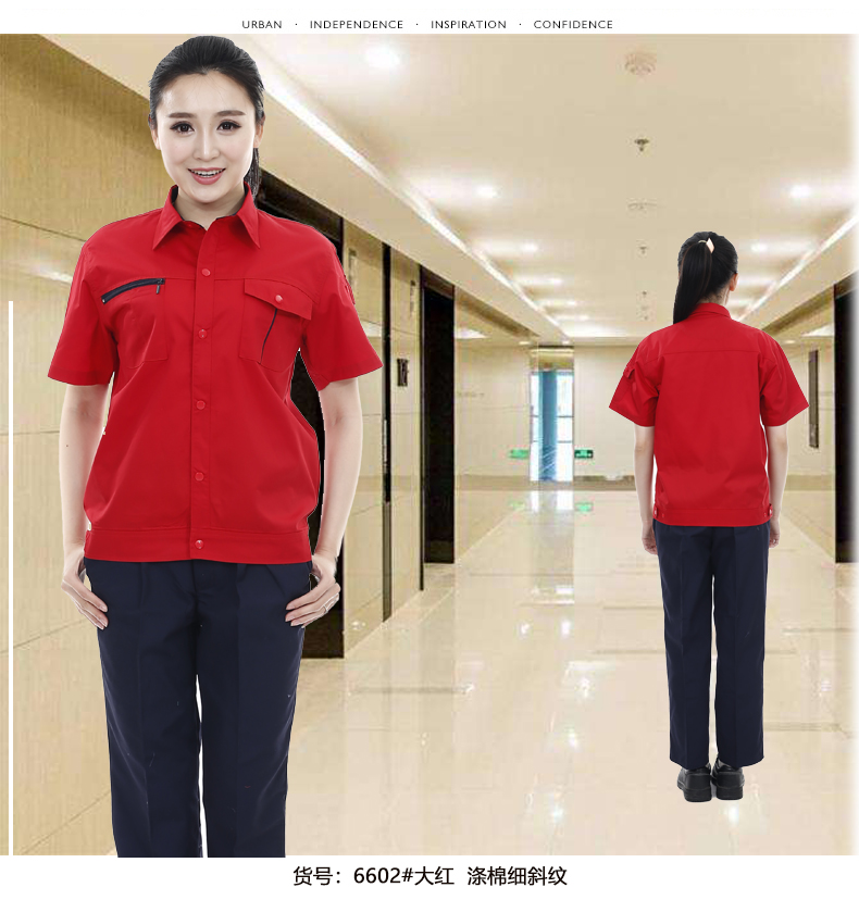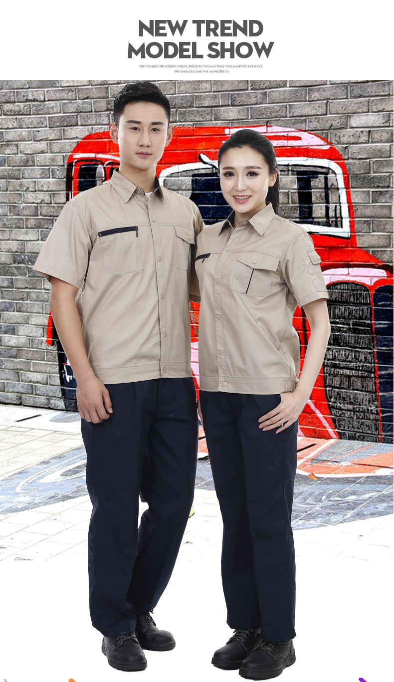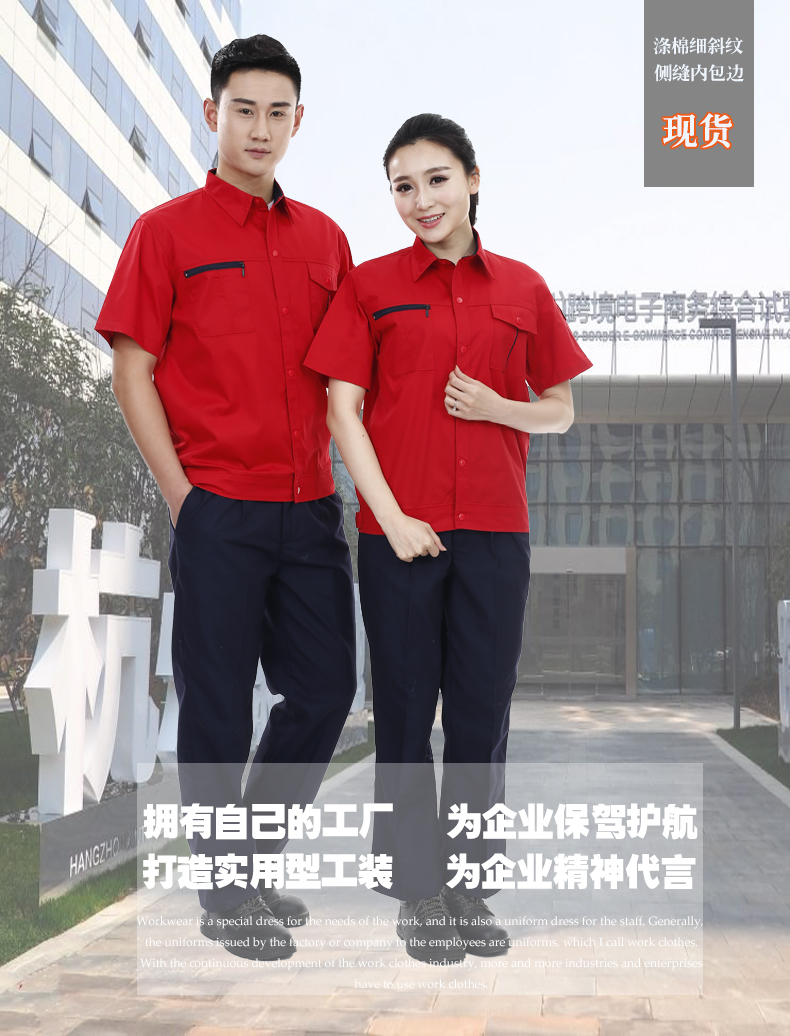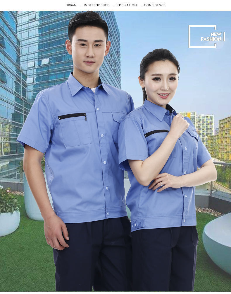 夏裝工作服 短袖工作服 GZFXZ-3 采用滌棉細斜紋面料。耐磨挺闊。