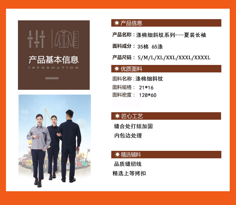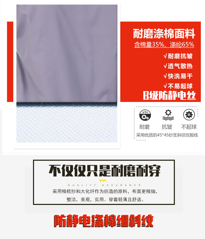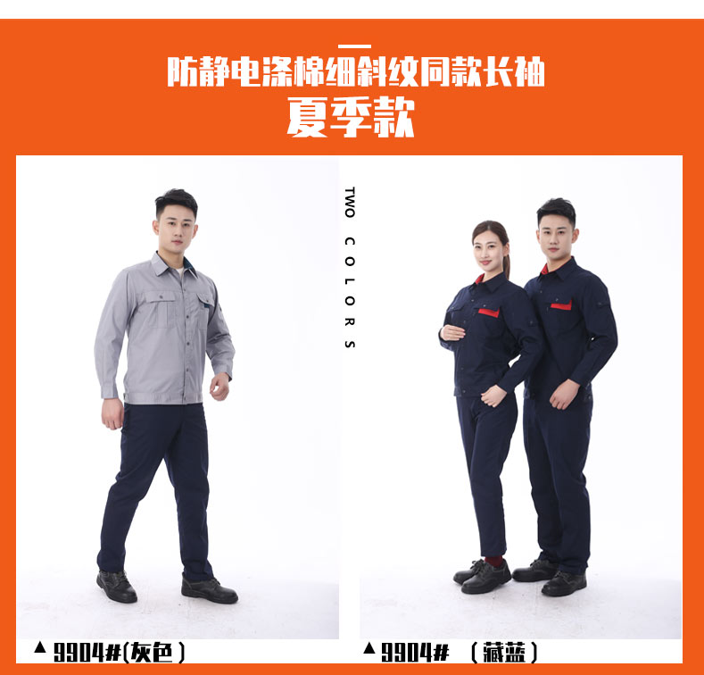 夏裝工作服 長袖工作服 GZFXZ-8 采用防靜電滌棉細斜紋功能性面料。特殊行業及崗位的特殊選用功能性面料。