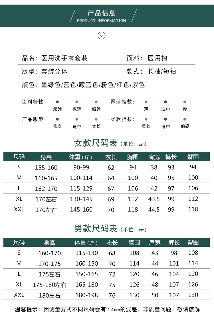 長袖洗手服 可定制不同顏色 XSF-01