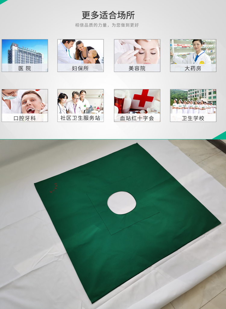 墨綠色洞巾(三甲醫院專用)各種規格可以定制,小洞巾,大洞巾,特大洞巾等等,選用三甲醫院專用面料。耐氯漂,耐高溫。...