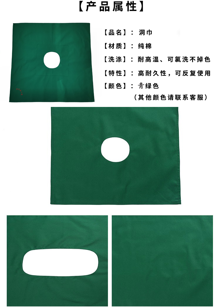 墨綠色洞巾(三甲醫院專用)各種規格可以定制,小洞巾,大洞巾,特大洞巾等等,選用三甲醫院專用面料。耐氯漂,耐高溫。
